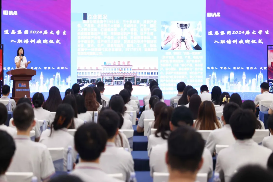 時間拉回到7月4日。當天舉行的迎新儀式上,劉麗麗副總裁介紹了企業概況、產品結構、人才引育等情況,“希望大家以歸零心態找準定位,在工作和生活中沉淀自己、充實自己、升華自己。”隨后,新員工通過實地參觀,進一步了解了道恩的產業鏈、產品鏈、企業鏈打造情況,為企業的發展成就感到震撼。