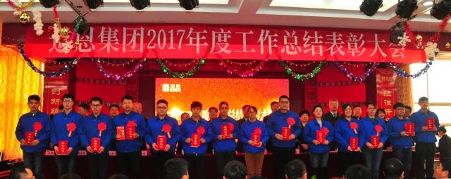 會議隆重表彰了2017年度做出突出貢獻的先進集體、先進個人,道恩集團領導向他們頒發了榮譽證書和獎金。