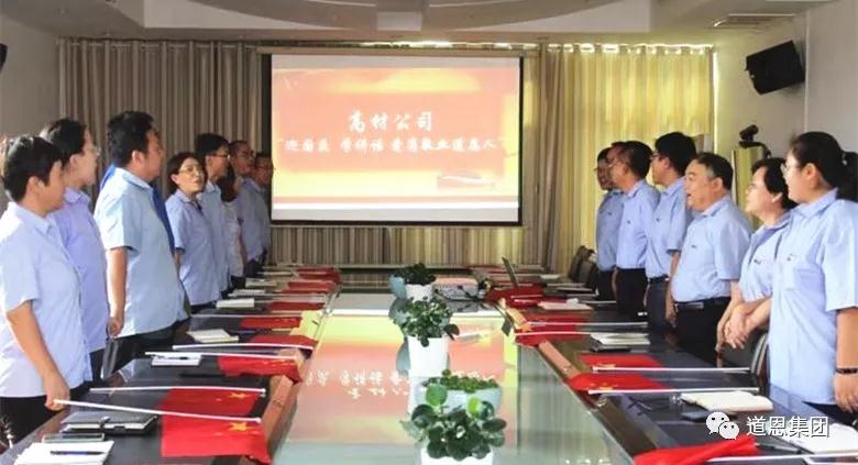 9月30日上午,高材公司舉辦以“迎國慶、學講話、愛崗敬業(yè)道恩人”為主題的喜迎國慶活動。活動中,該公司總經(jīng)理臧云濤帶領與會人員學習于曉寧董事長在集團公司慶祝新中國成立70周年主題文化活動上的講話,觀看了大型愛國勵志短片《國家》,該公司班子成員共同歌唱《國家》,最后共同喊出道恩“三共”口號,表達了對國家、對道恩的深情祝福。