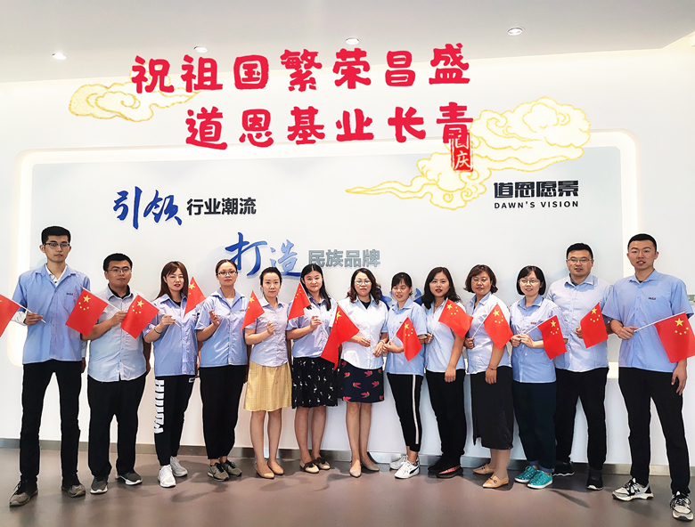70年崢嶸歲月,70年方興未艾。我們偉大的祖國即將步入新的征程。新時代是奮斗者的時代,全體道恩人將堅定信念跟黨走,朝著“引領行業(yè)潮流、打造民族品牌、成就百年道恩”的愿景闊步前進。