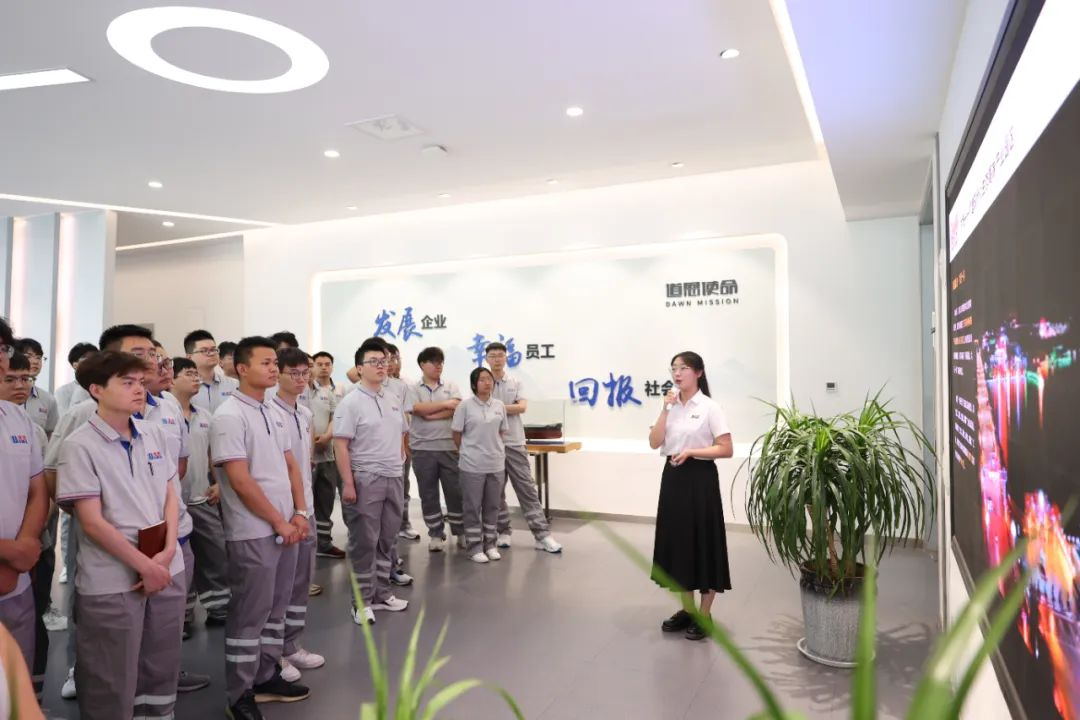 在7月6日召開的歡迎儀式上,劉麗麗副總裁向新員工們介紹了企業(yè)概況、產(chǎn)品結(jié)構(gòu)、人才引育等情況,希望新入職大學(xué)生員工以歸零心態(tài)找準(zhǔn)定位,腳踏實地,在工作和生活中沉淀自己、充實自己、升華自己。次日,新員工通過實地參觀了解集團公司的產(chǎn)業(yè)鏈、產(chǎn)品鏈、企業(yè)鏈打造情況,為道恩的發(fā)展成就感到震撼。